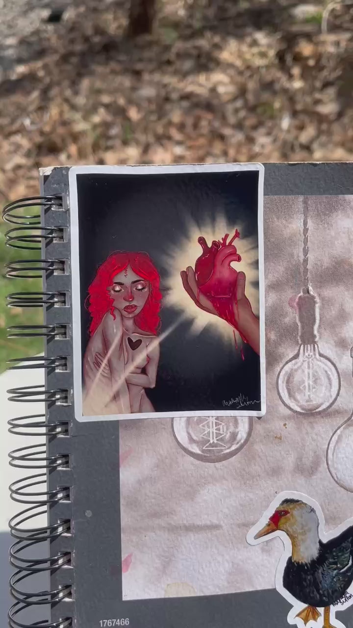 Gothic Red-Haired Heart In Hand Kiss-Cut Sticker